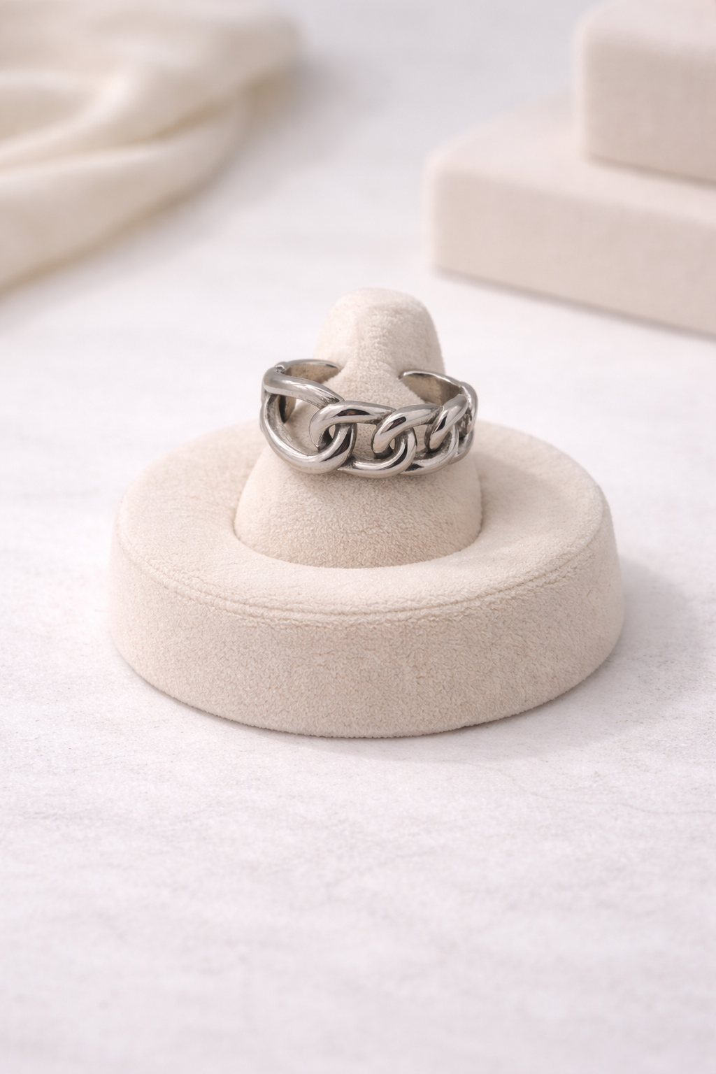 Δαχτυλίδι με chunky αλυσίδα σε δυναμικό, σύγχρονο design. Ένα statement κομμάτι που φοριέται μόνο του ή σε layering.