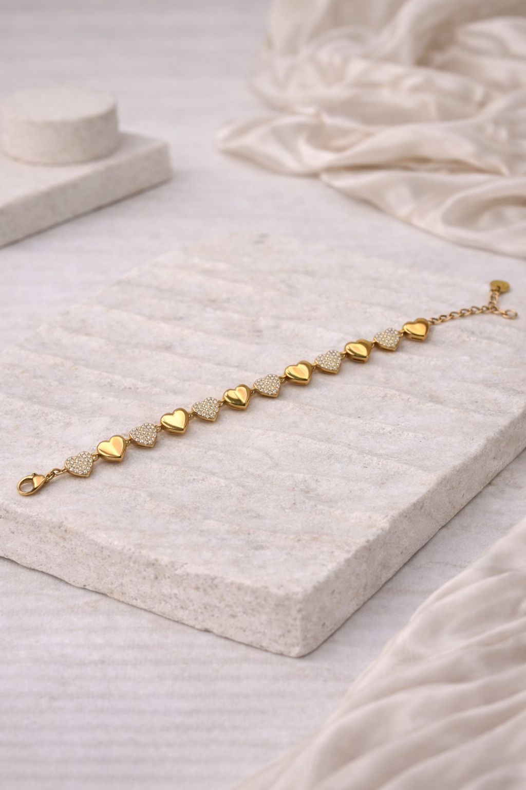 Λεπτό ατσάλινο βραχιόλι με εναλλασσόμενες καρδιές.Διακριτική λάμψη για όλες εμφανίσεις.