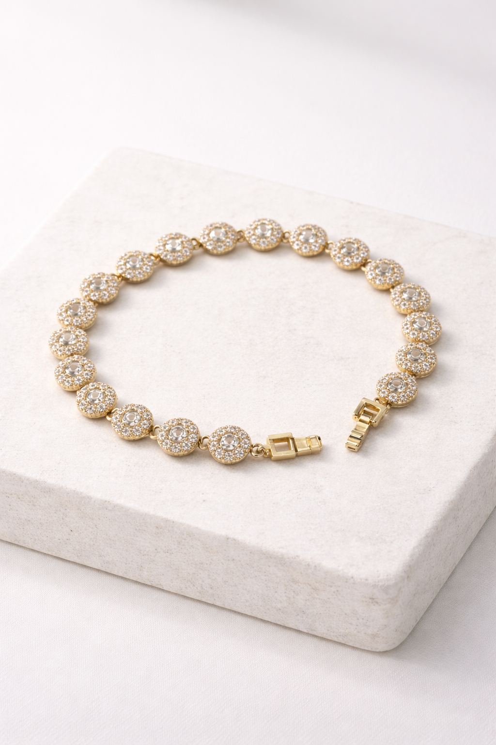 Ατσάλινο βραχιόλι με κυκλικά στοιχεία και διακριτική λάμψη.Κομψό και φωτεινό, ιδανικό για κάθε στιγμή.