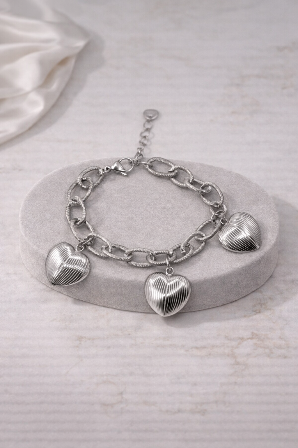 Ατσάλινο βραχιόλι με αλυσίδα και ανάγλυφες καρδιές.
