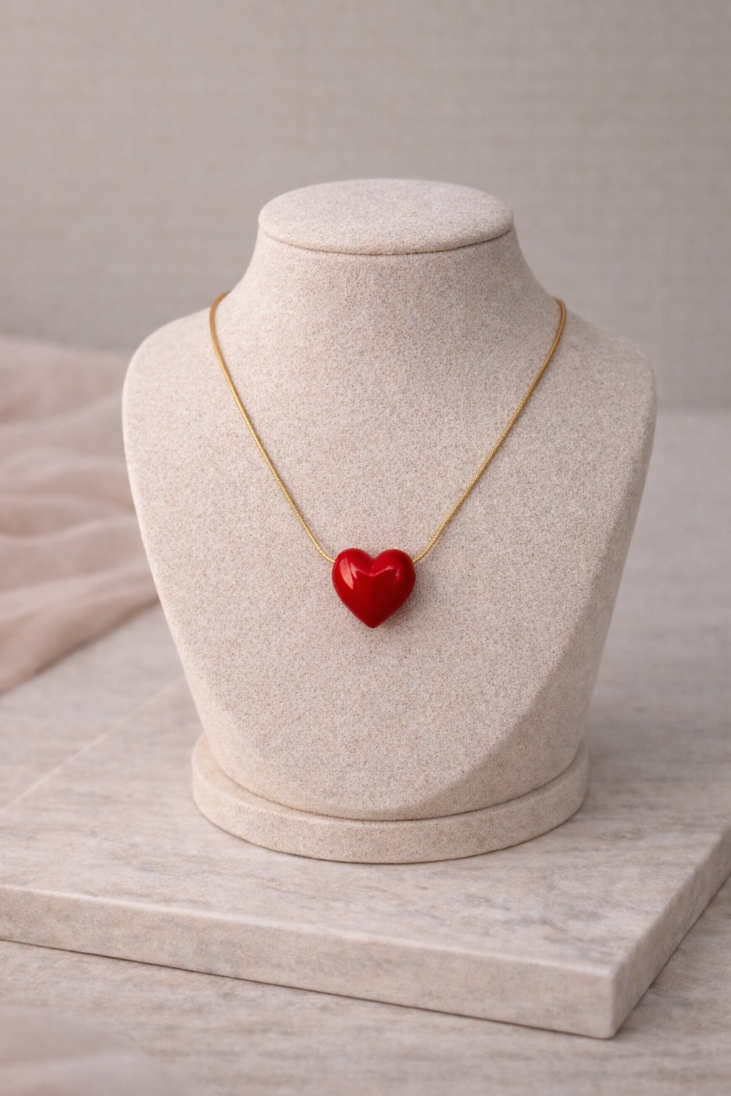 Λεπτό χρυσό κολιέ με εντυπωσιακή κόκκινη καρδιά στο κέντρο. Θηλυκό και ρομαντικό, ιδανικό για να δώσει χρώμα και χαρακτήρα σε κάθε εμφάνιση. ❤️
