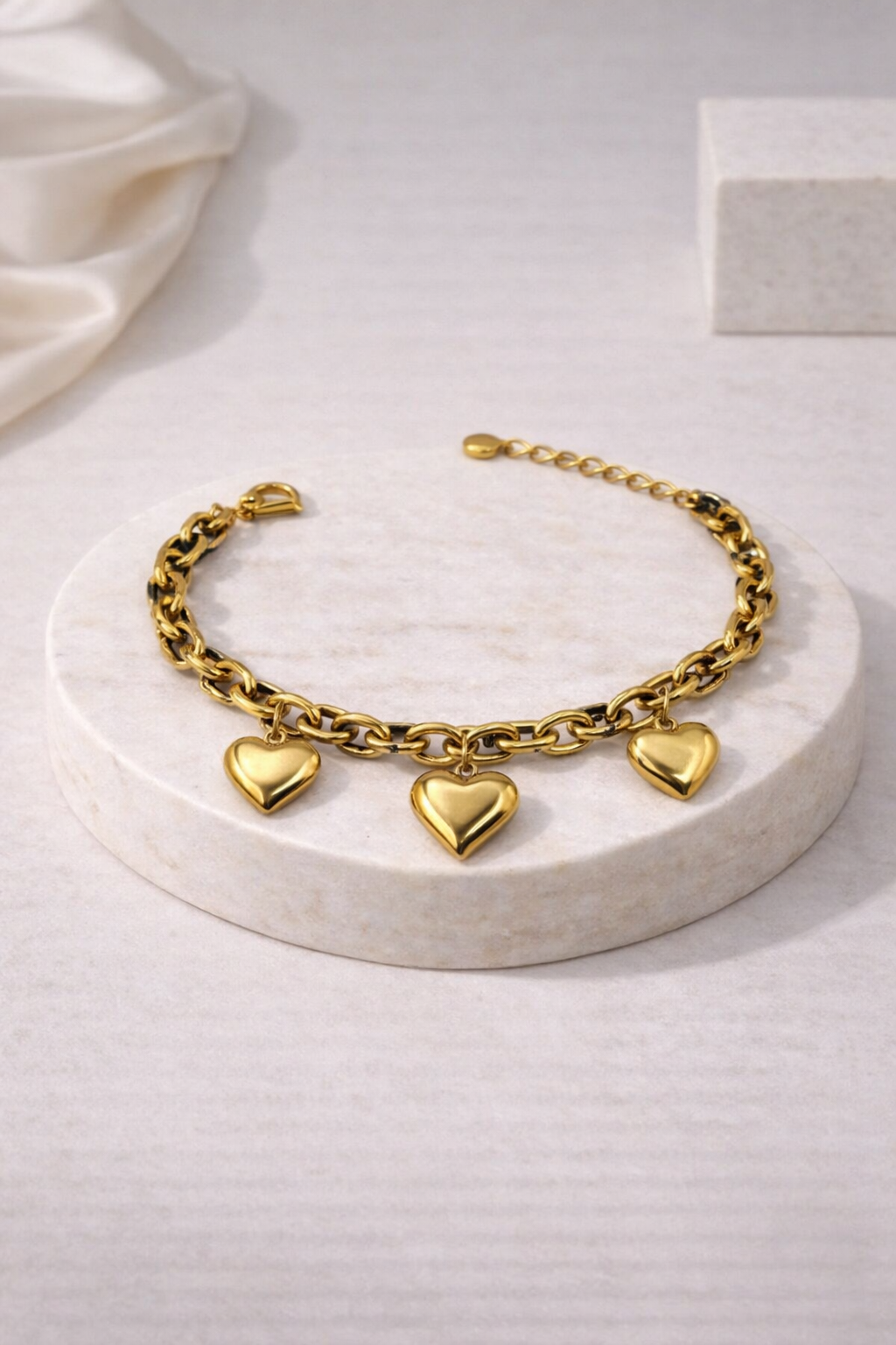Ατσάλινο βραχιόλι με αλυσίδα και τρεις καρδιές.Δυνατό αλλά κομψό, ιδανικό για καθημερινό statement.